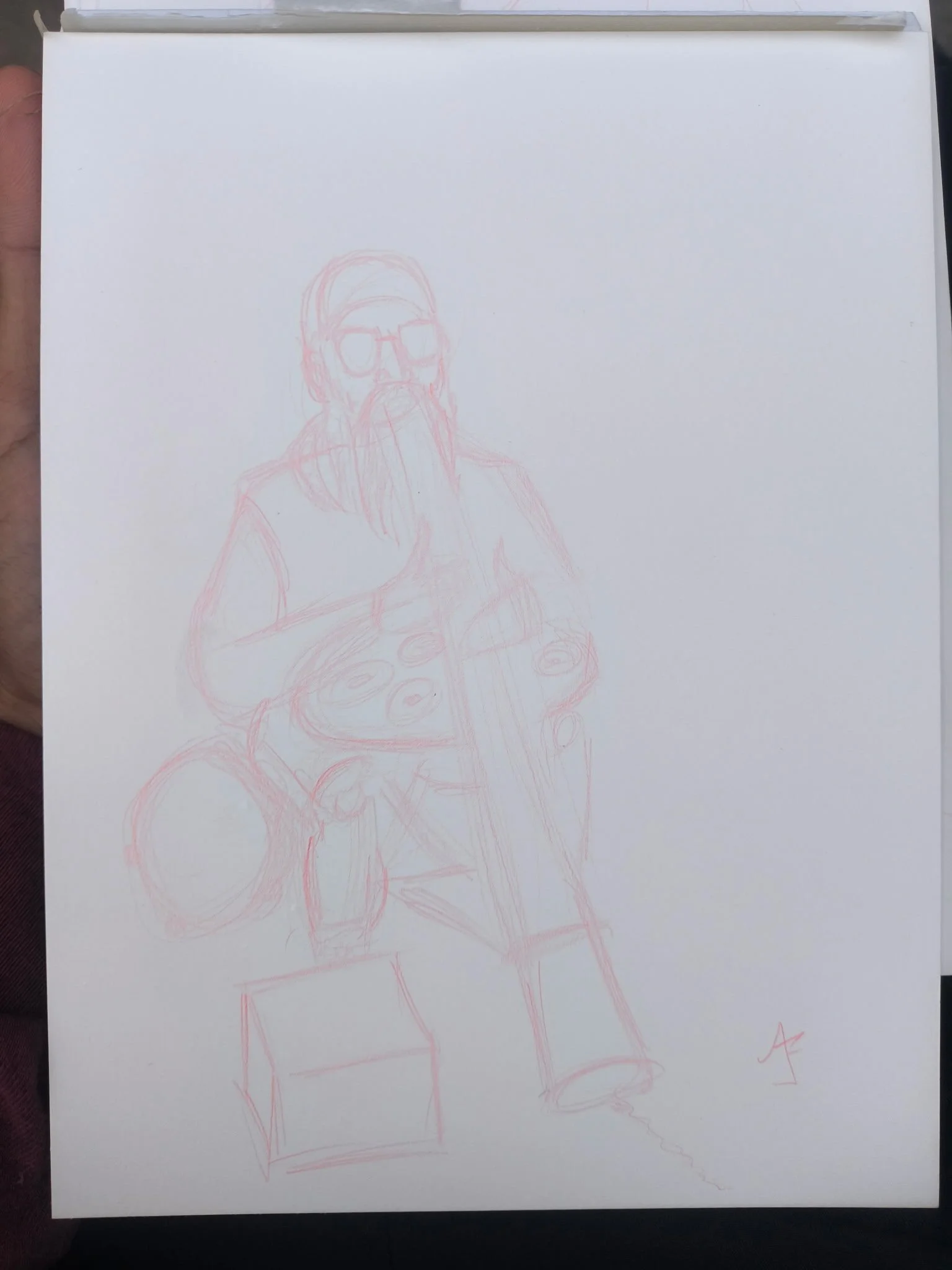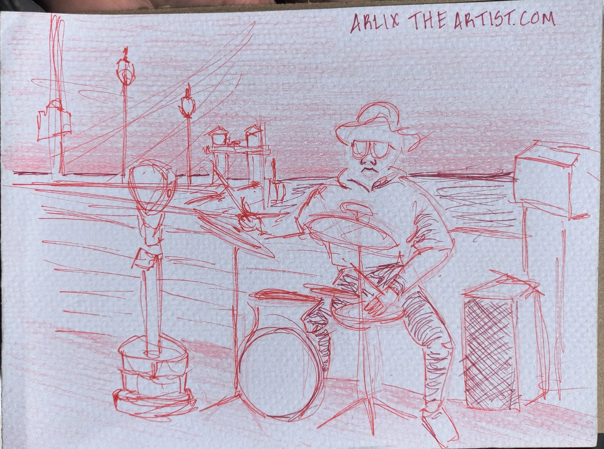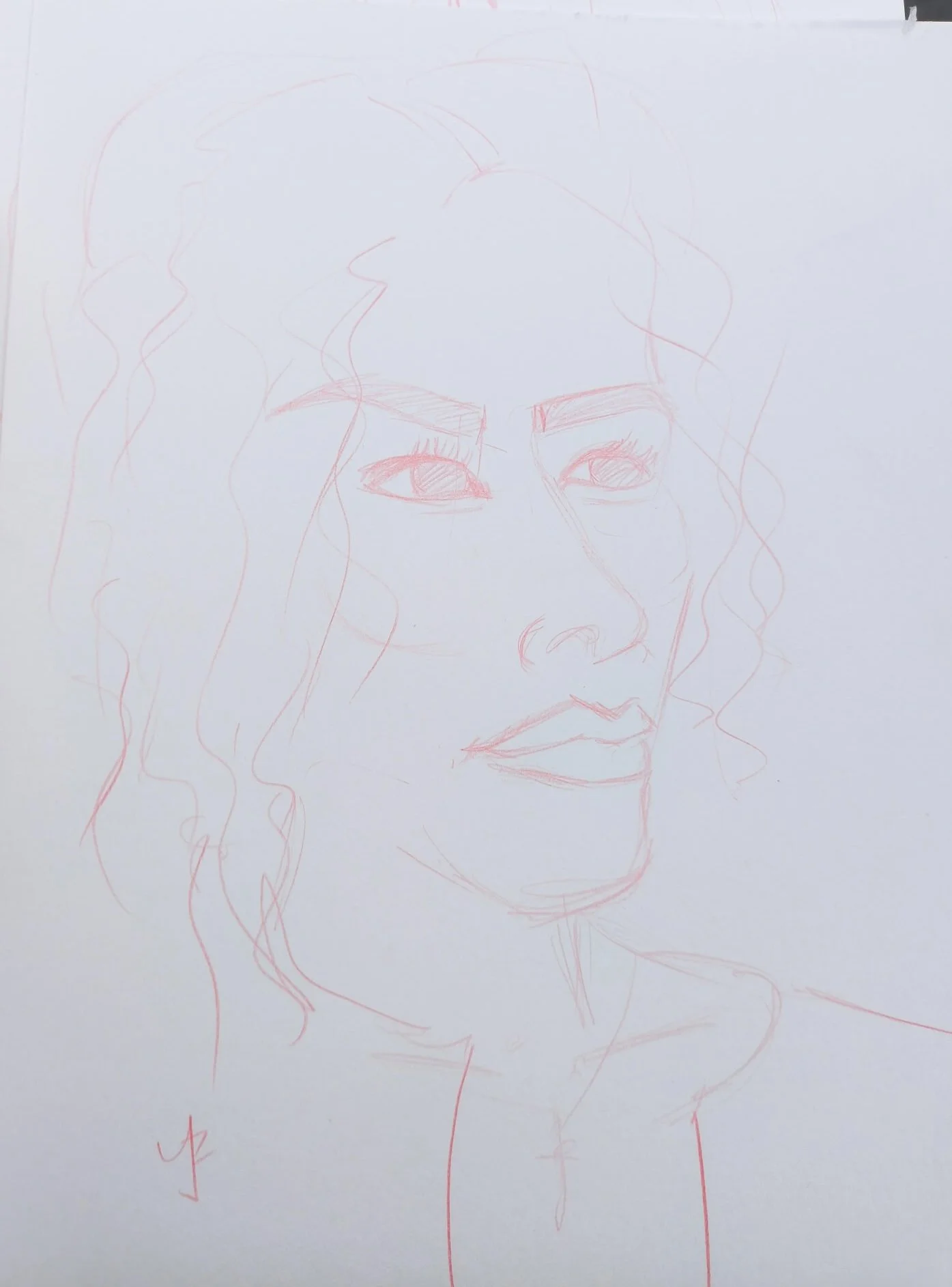 The following sketches were done live! 3-5 mins in red mechanical lead and/or pen